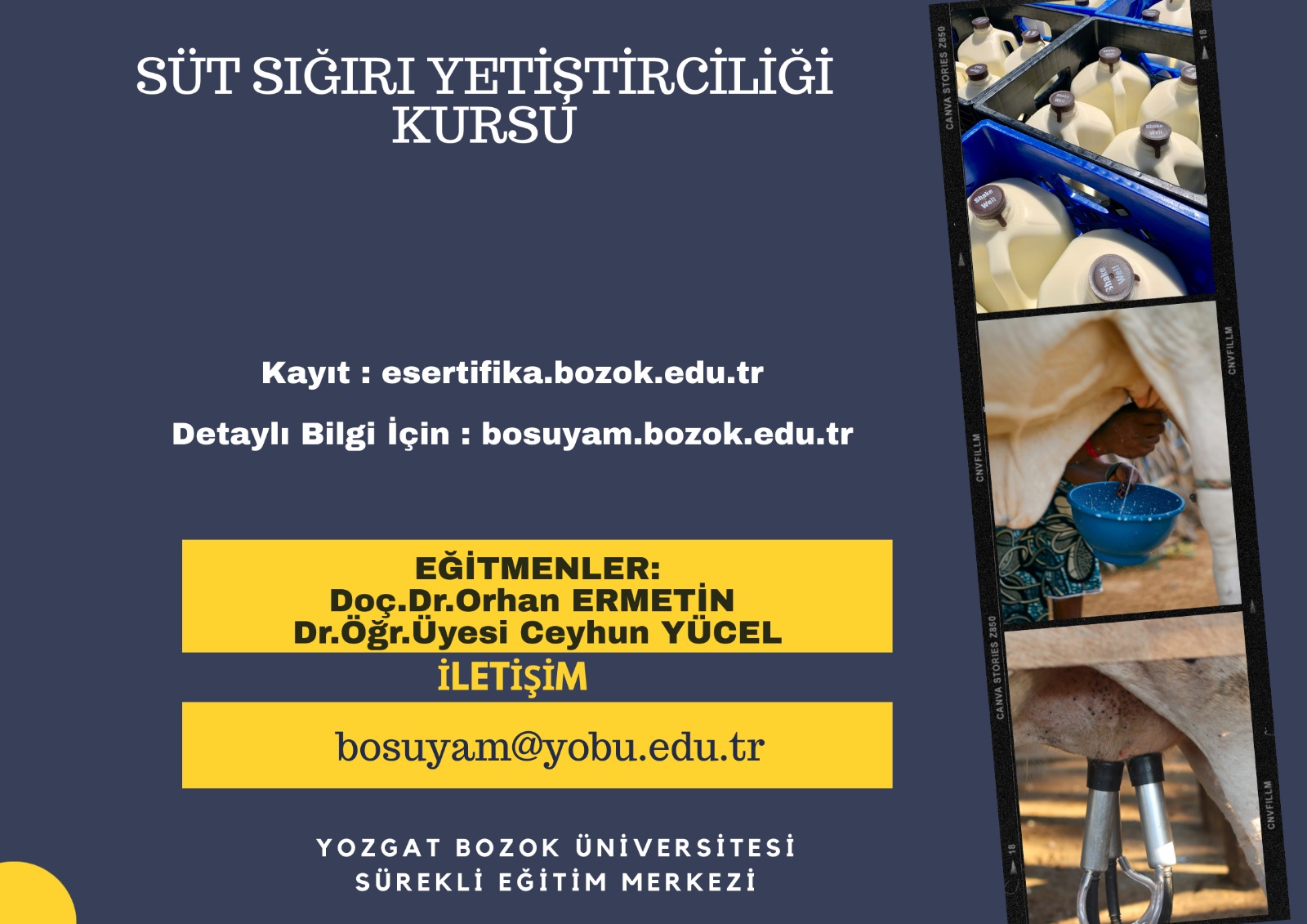 Merkezimiz tarafından düzenlenecek olan Sertifikalı Süt Sığırı Yetiştiriciliği Kursu için başvurular başlamıştır. Süt sığırcılığı alanında profesyonel bilgi edinmek, modern yetiştiricilik tekniklerini öğrenmek ve işletme verimliliğini artırmak isteyen tüm katılımcılar eğitimimize davetlidir.